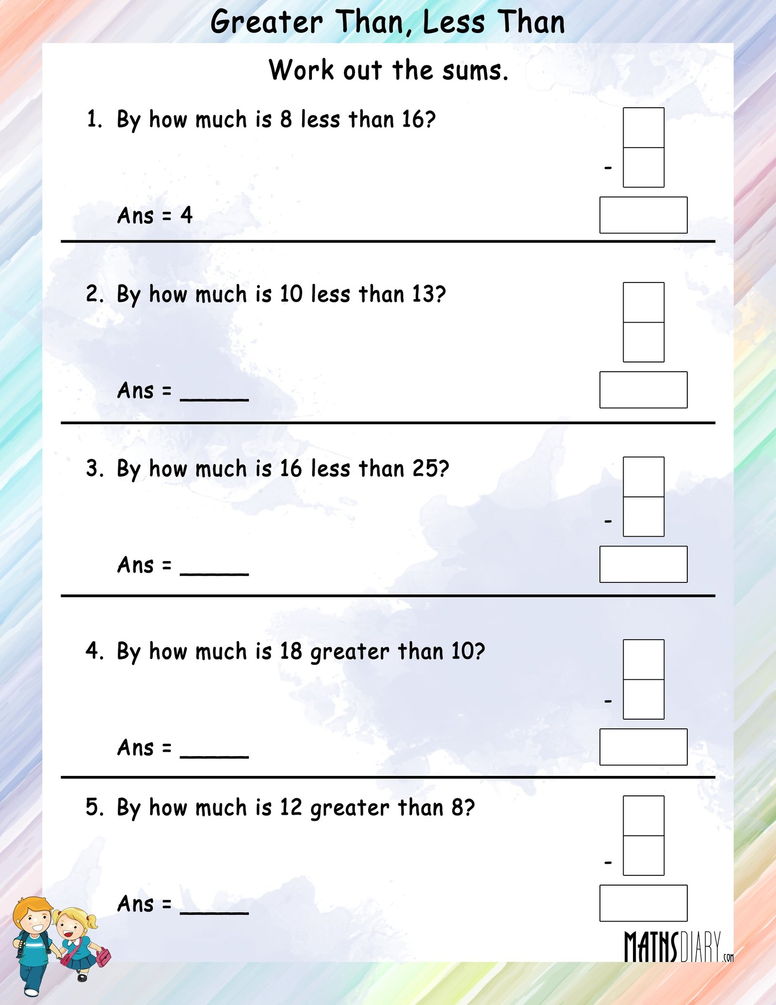 So, whether you are a teacher looking to enhance your math curriculum or a parent wanting to support your child’s learning at home, consider incorporating math less than greater than worksheets into your educational toolkit. These worksheets are a fun and effective way to help children improve their math skills and develop a deeper understanding of numerical relationships.