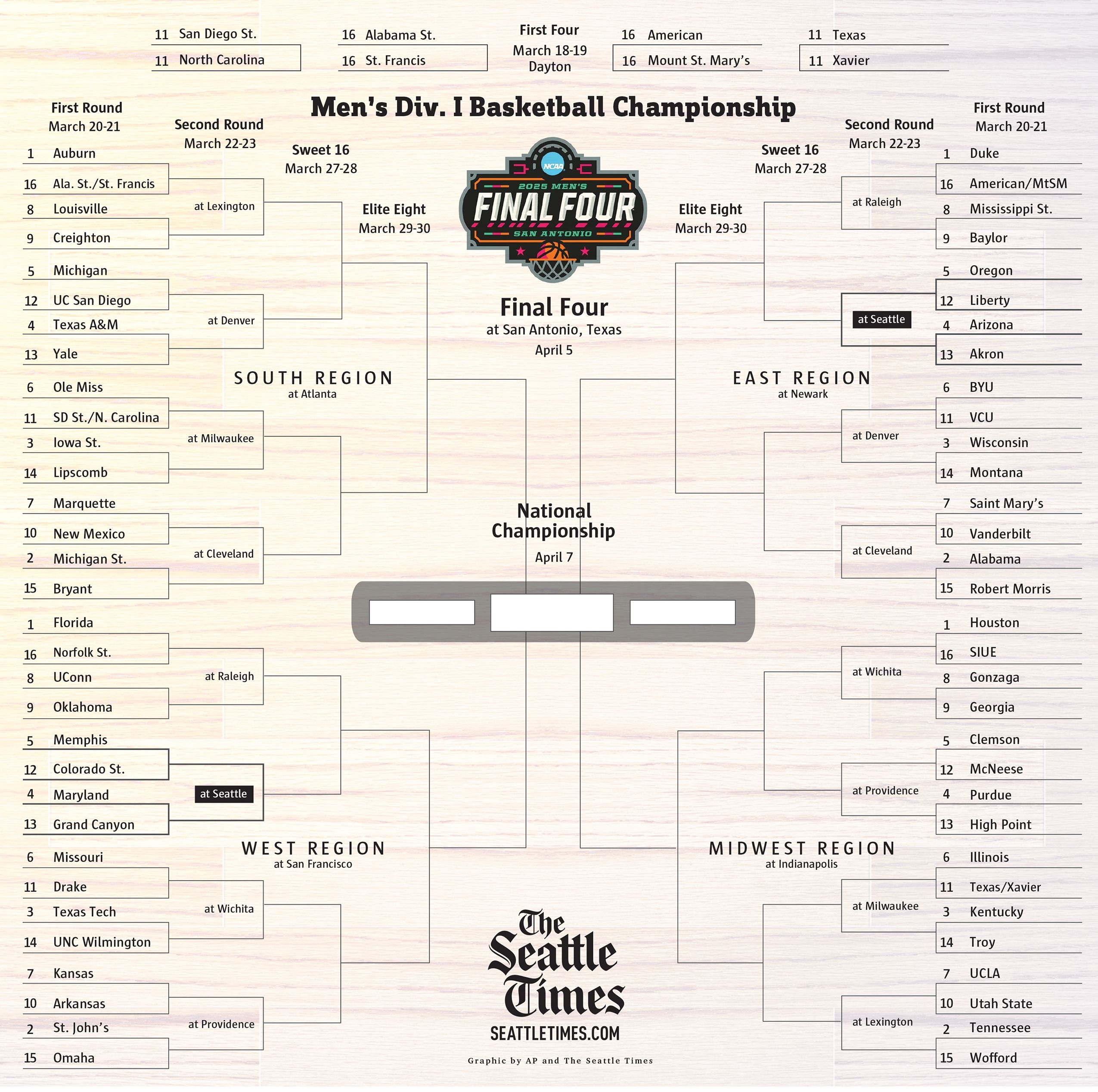 2025 NCAA Men s Women s Tournaments Download And Print Your Brackets The Seattle Times