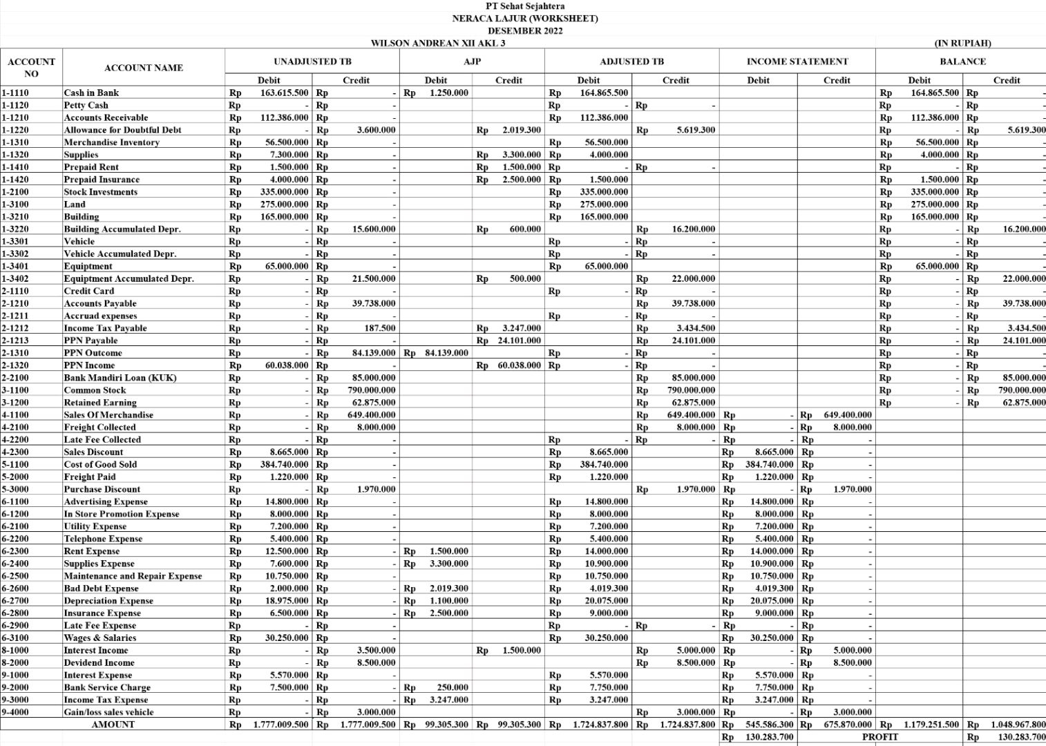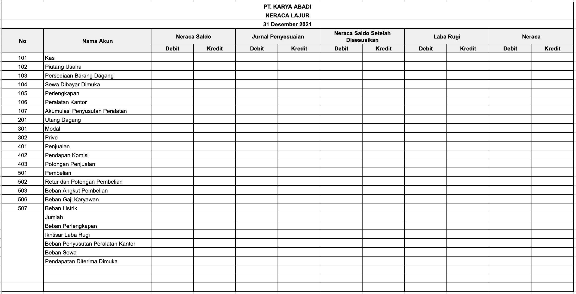 Neraca Lajur Worksheet