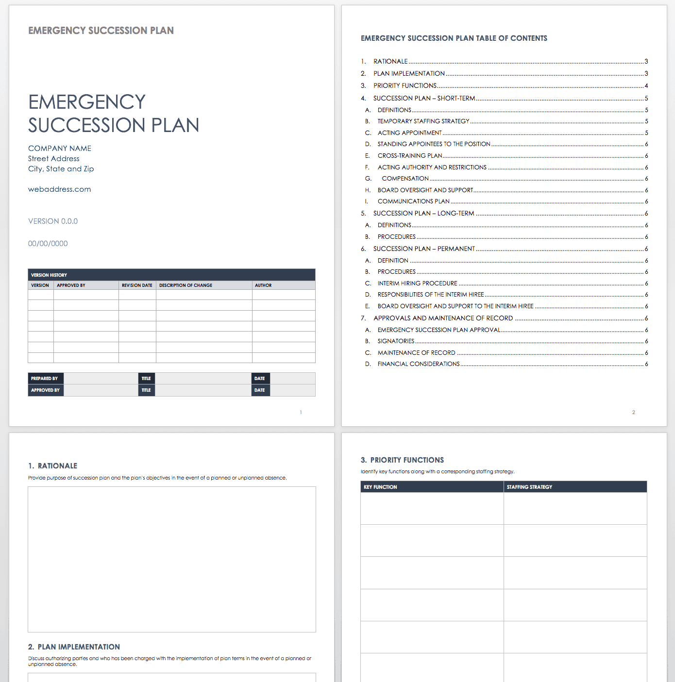 The nonprofit succession plan template should include the following key components:
