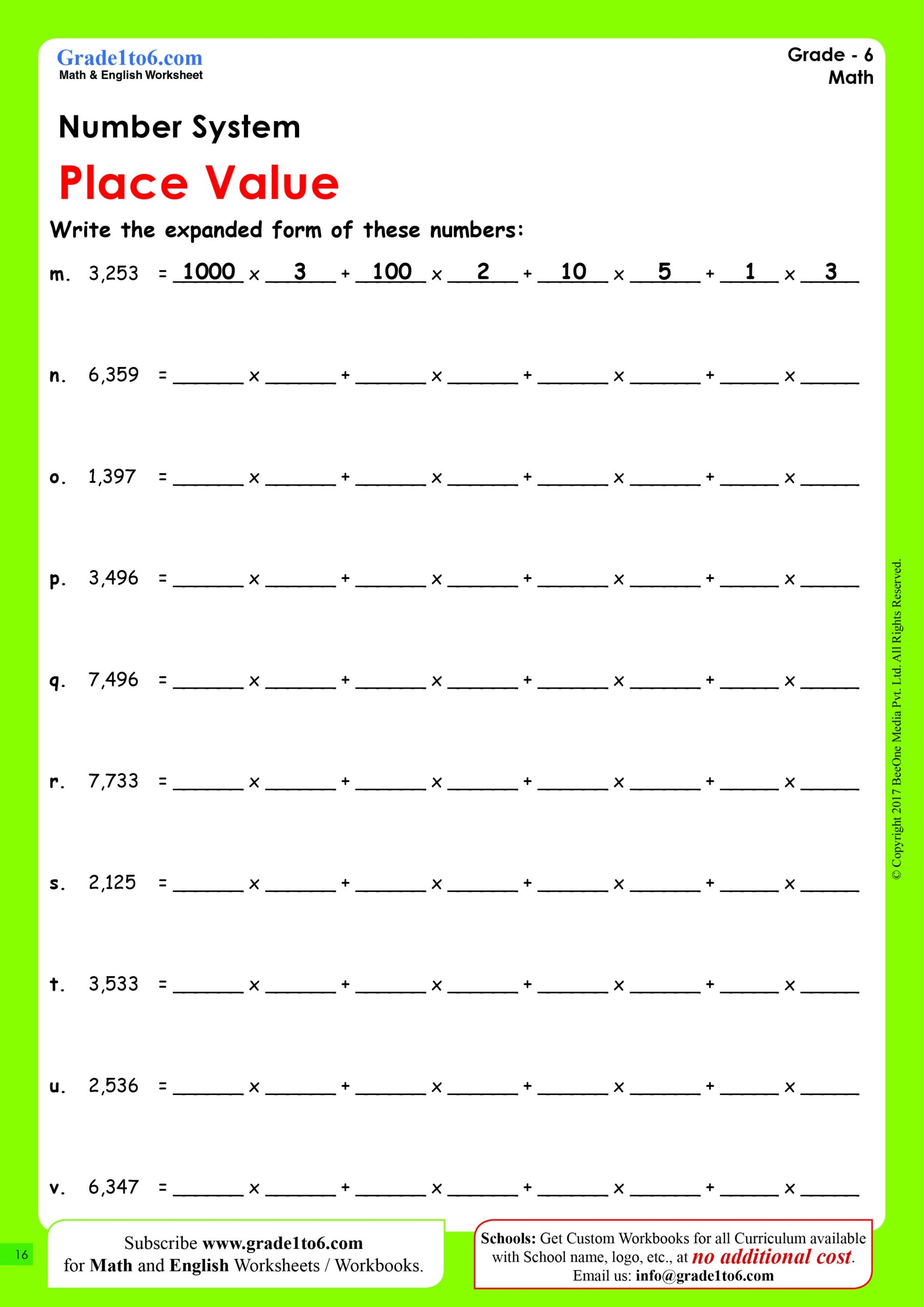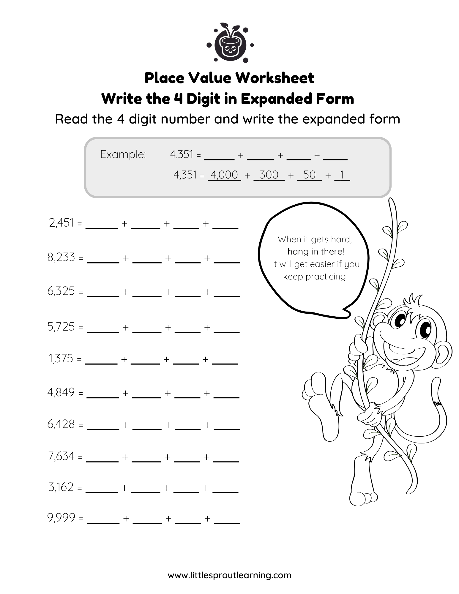 These worksheets typically provide a number in standard form and ask students to break it down into its expanded form. This not only helps students understand the place value of each digit in a number but also reinforces their ability to write numbers in different forms.