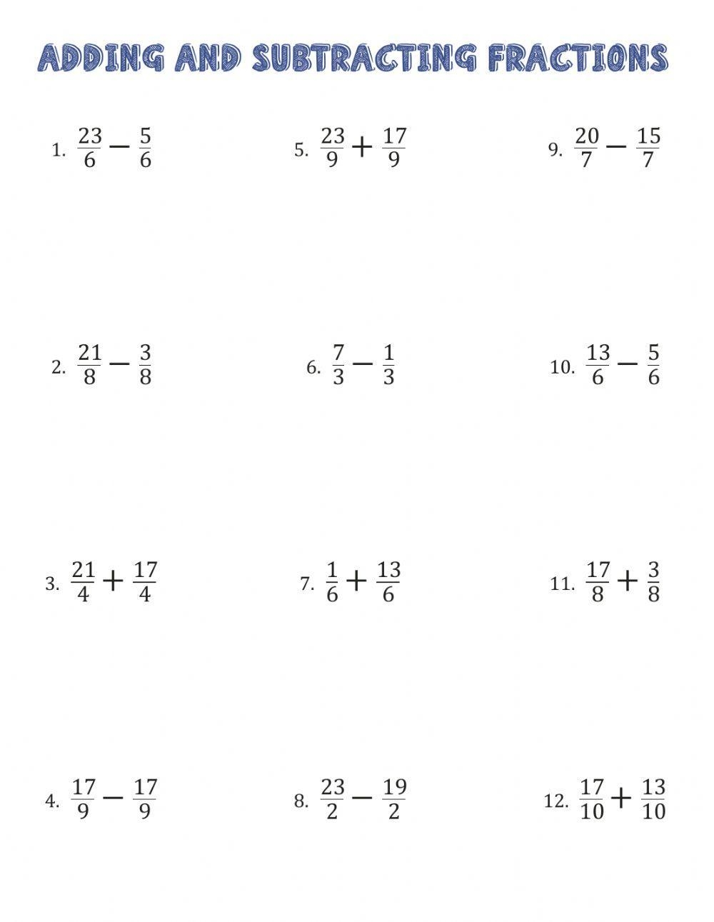One common type of problem found on operations with fractions worksheets is adding and subtracting fractions with like and unlike denominators. These problems require students to find a common denominator, add or subtract the numerators, and simplify the resulting fraction. By practicing these types of problems on a worksheet, students can develop the skills needed to handle more complex fraction operations.