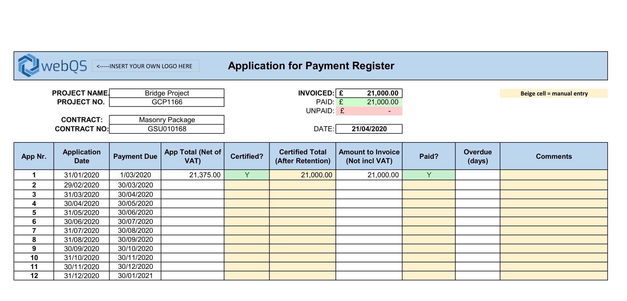 Progress Payment Payment Schedule Excel Template WebQS