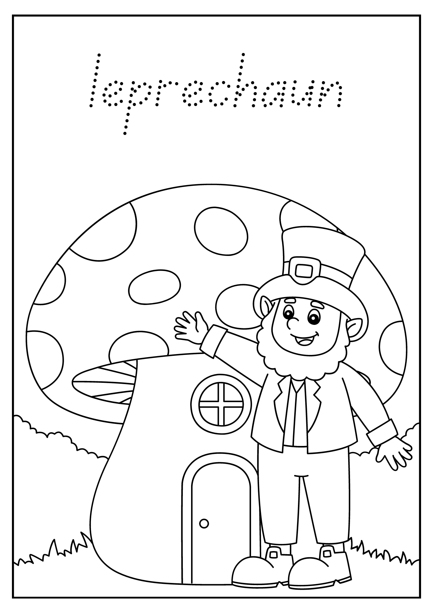 4. Leprechaun’s Home: Color in a cozy little cottage where a leprechaun lives, complete with a thatched roof and a garden full of shamrocks. You can even include a tiny pot of gold hidden somewhere in the scene.