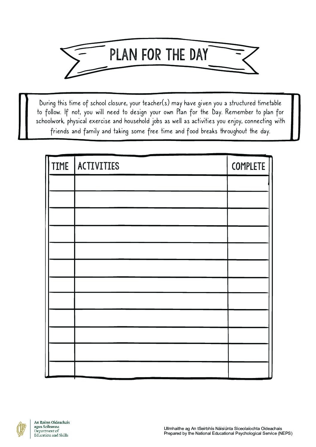 Plan for the Day Template