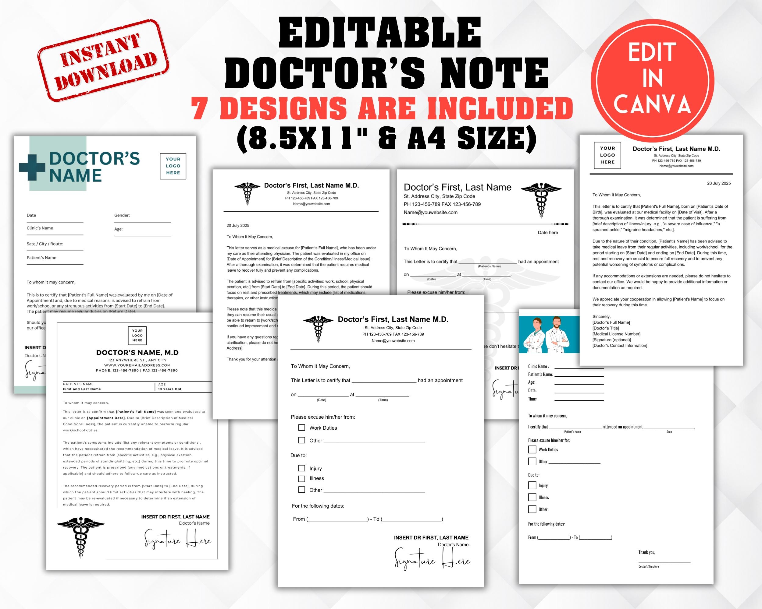Doctors Note Template Doctor Note Doctor Excuse Note Doctor Note For Work Doctor Note For School Etsy