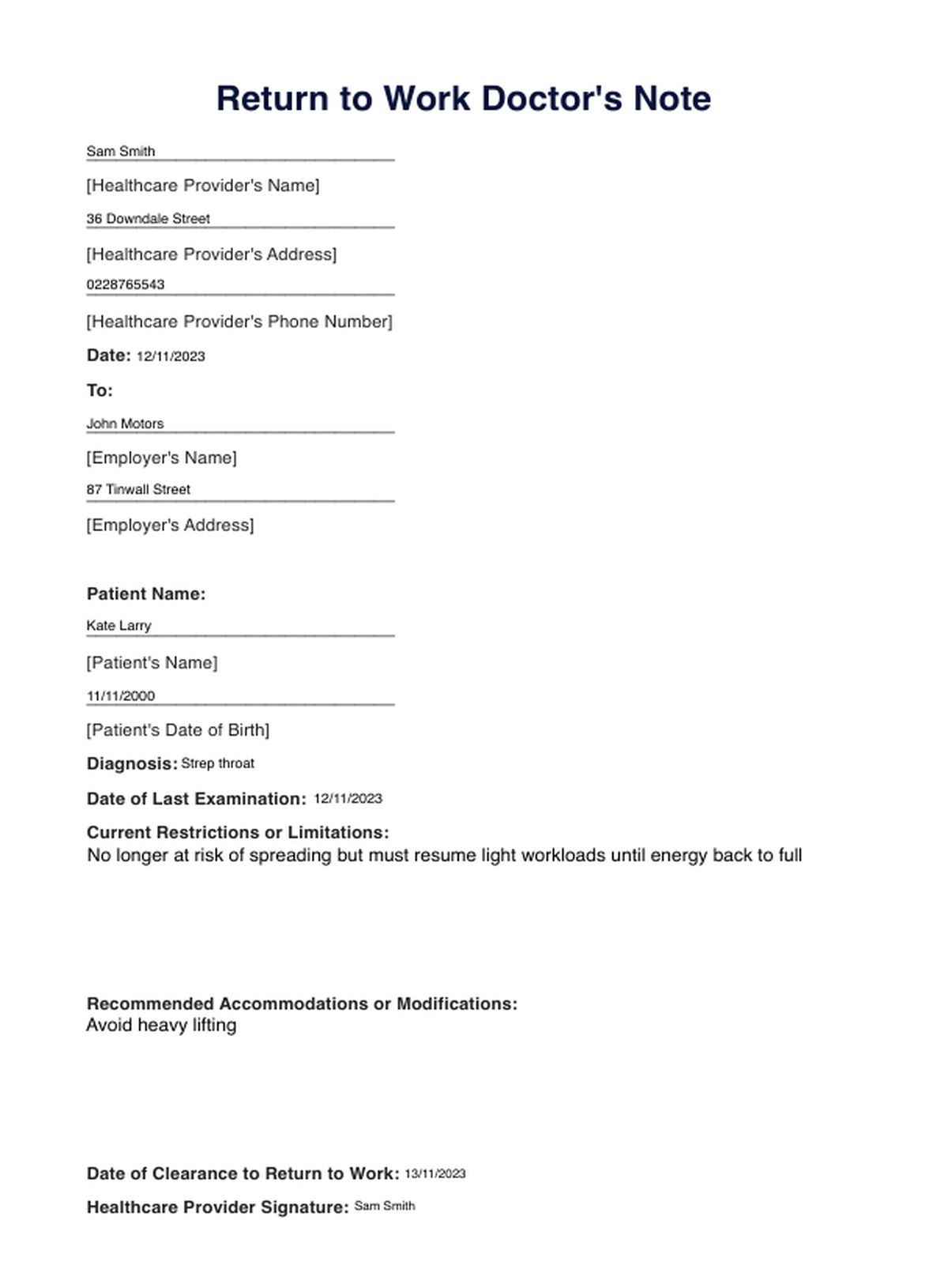 Return To Work Doctors Note Template U0026 Example Free PDF Download