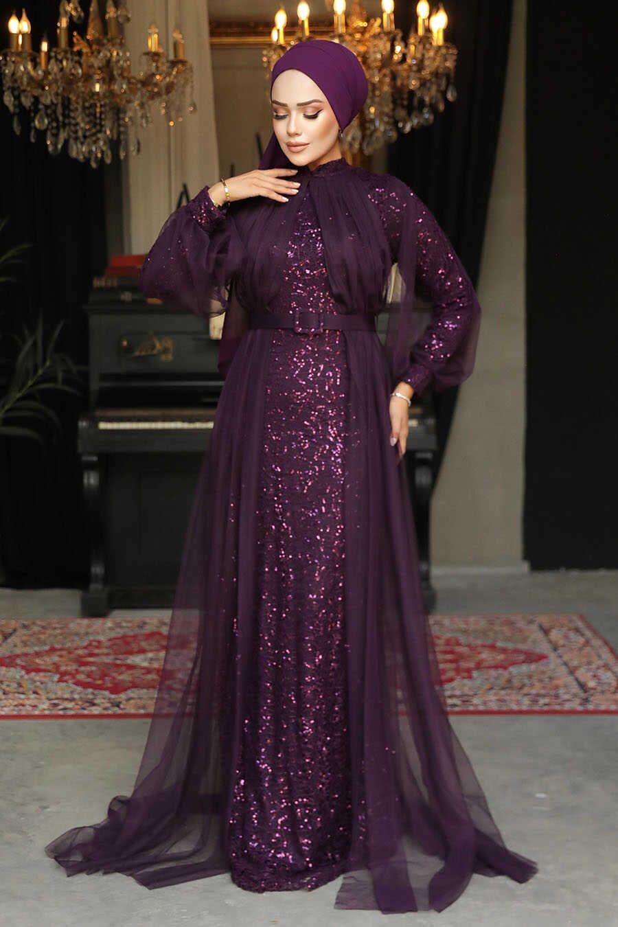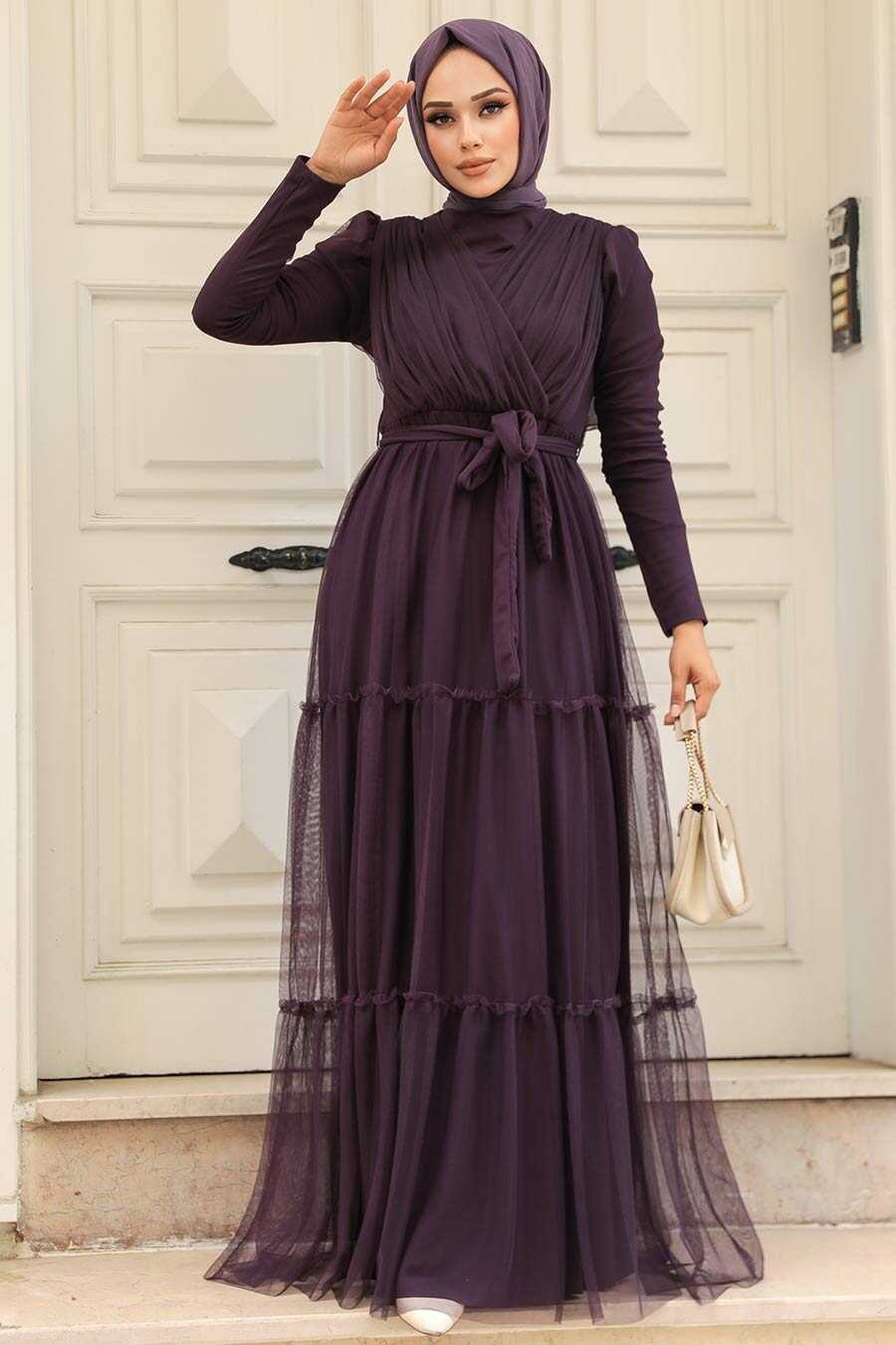 Plum Color Turkish Hijab Prom Dress 5441MU