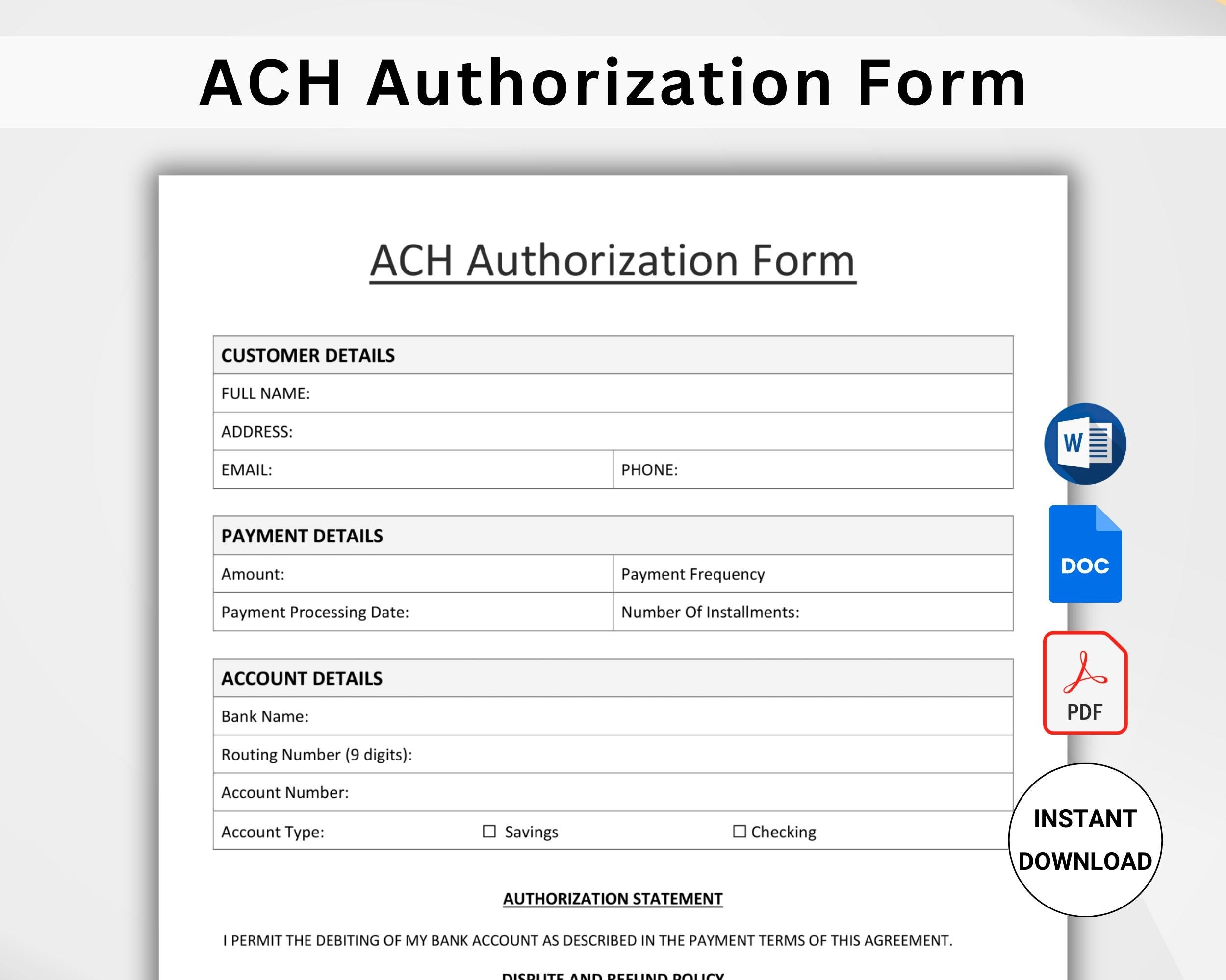 ACH Authorization Form Template Editable Debit Authorization For Payment ACH Payment Template ACH Debit Form Printable Word google Docs Etsy