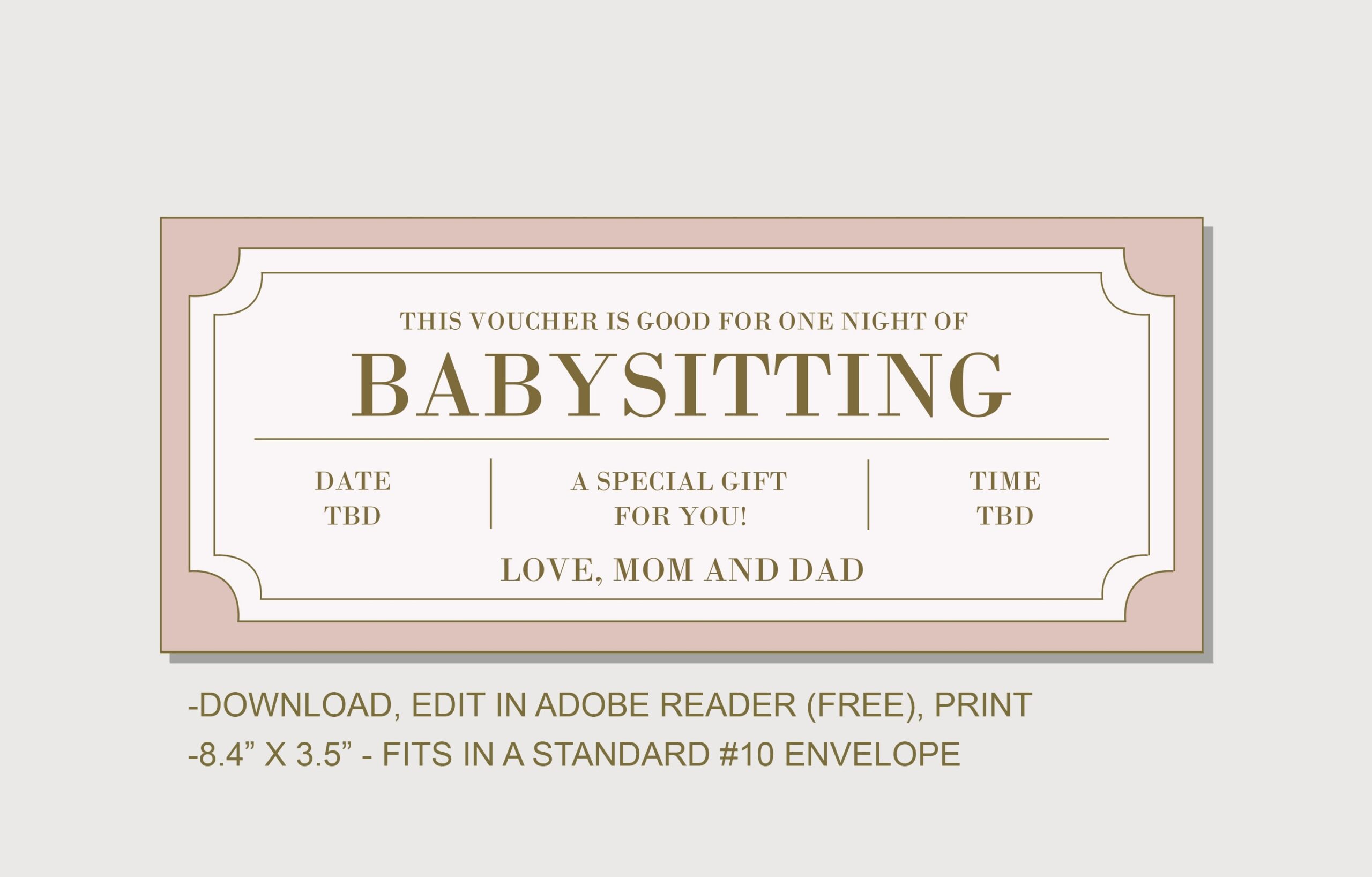 Babysitting Coupon Template Editable Gift Voucher Printable Babysitting Coupon Etsy