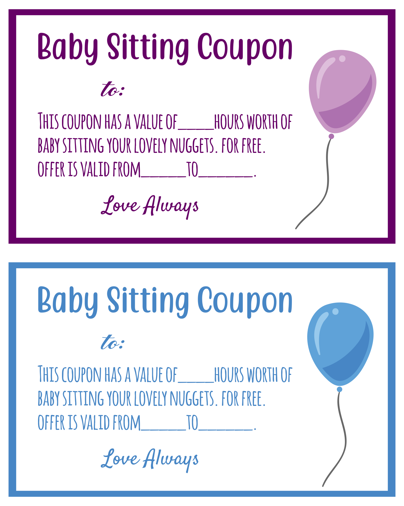 Printable Babysitting Coupon Template