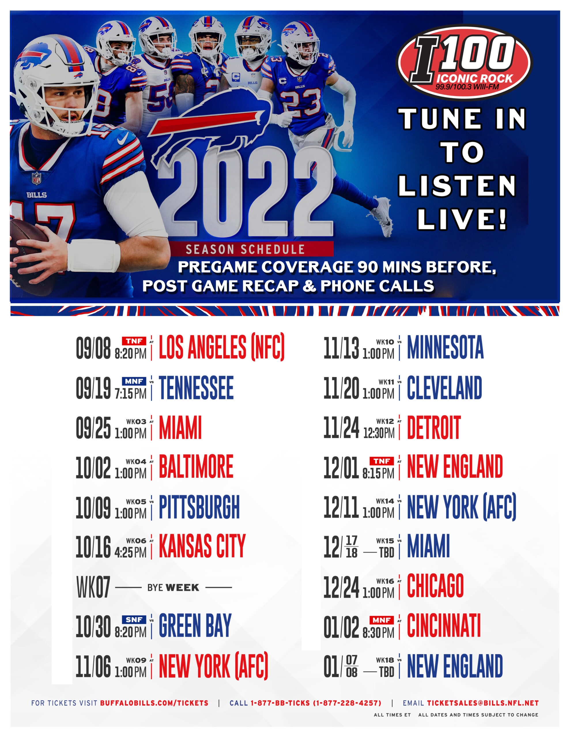 Here is the printable Buffalo Bills schedule for the upcoming season: