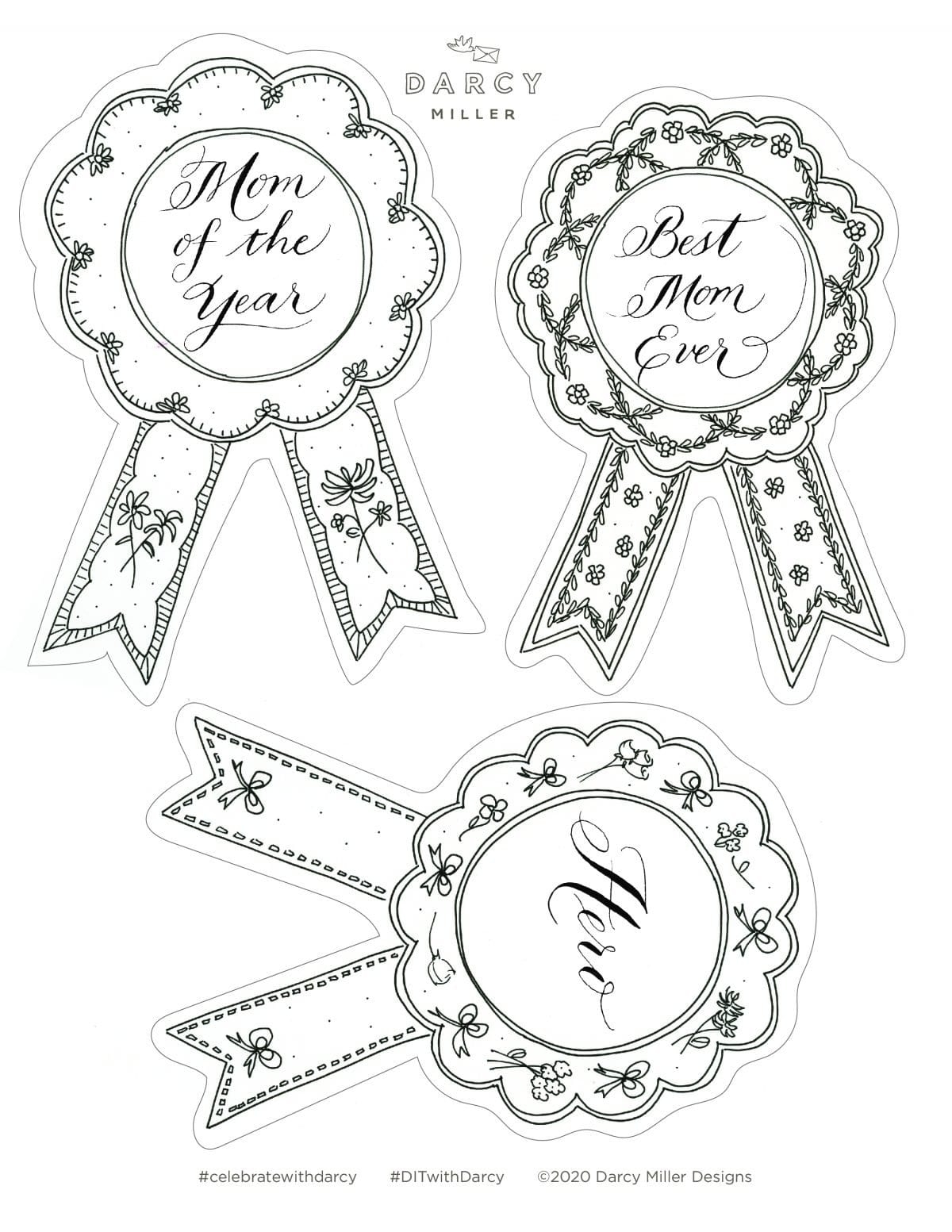 Doodle Award Ribbon Black U0026 White Lineart Digital Graphic Line Art Label Clipart Birthday Award Template Print And Colour DIY Etsy