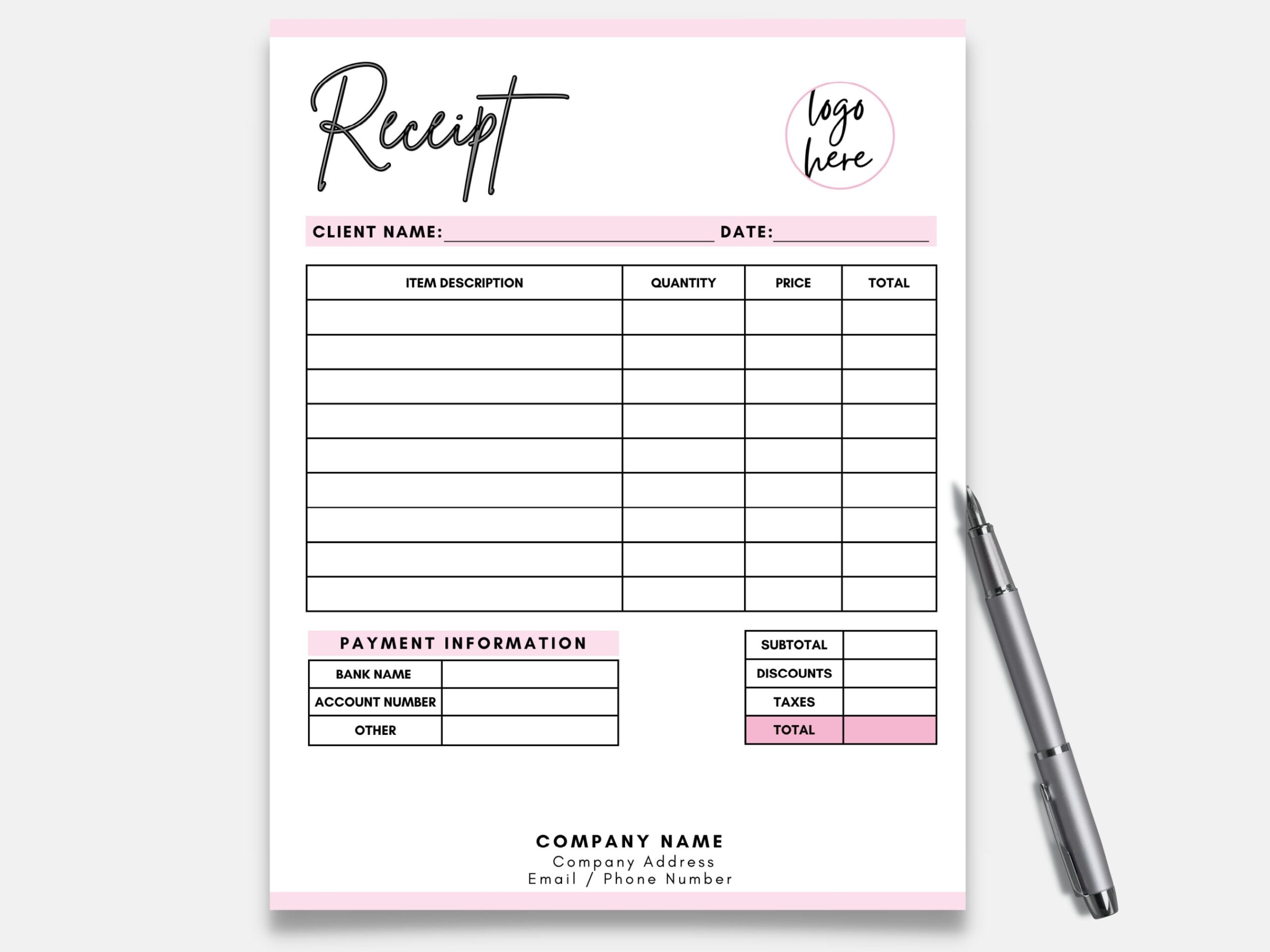 Receipt Template Small Business Receipt Custom Order Form Order Form Template Invoice Template Editable Order Receipt Form Receipt Etsy