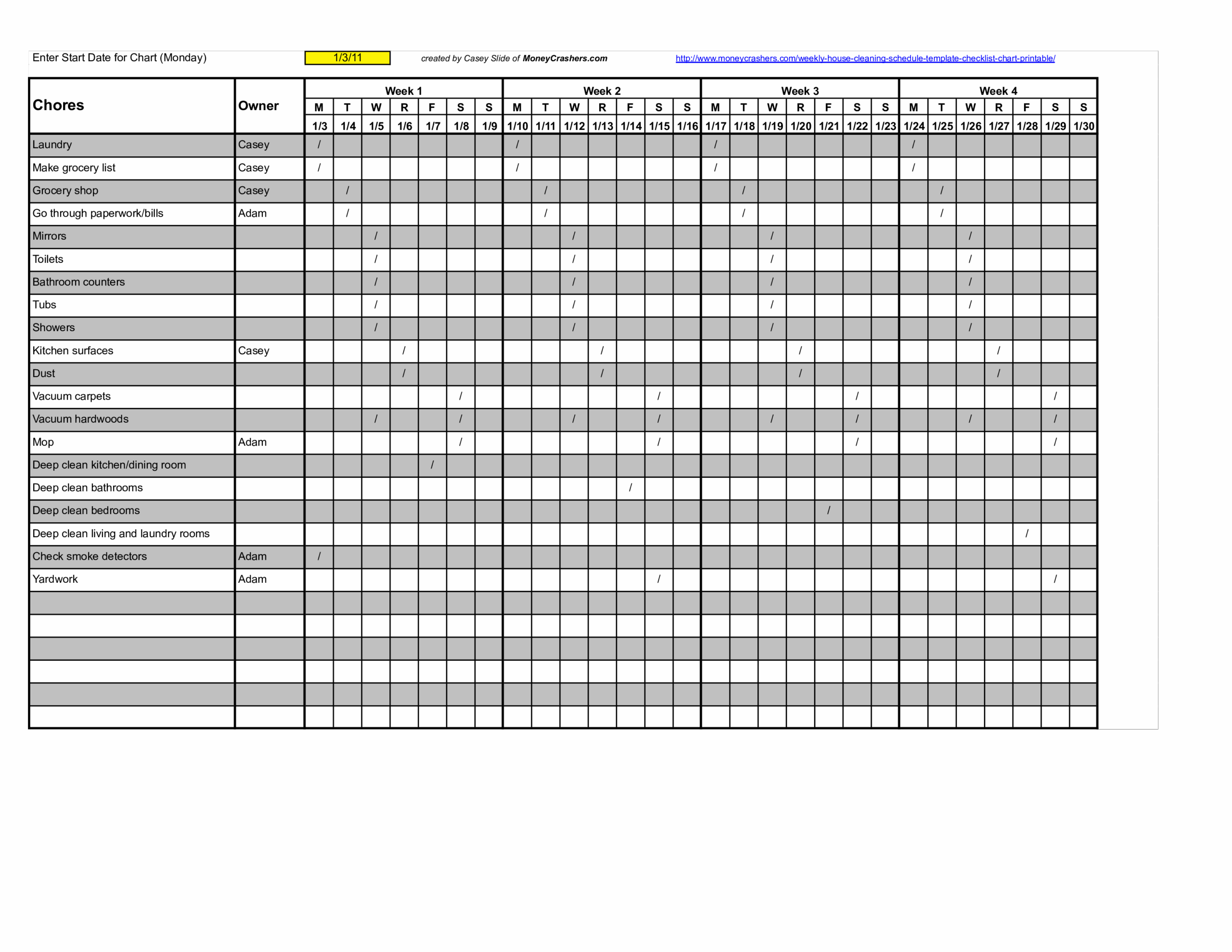 Restaurant Cleaning Schedule Template