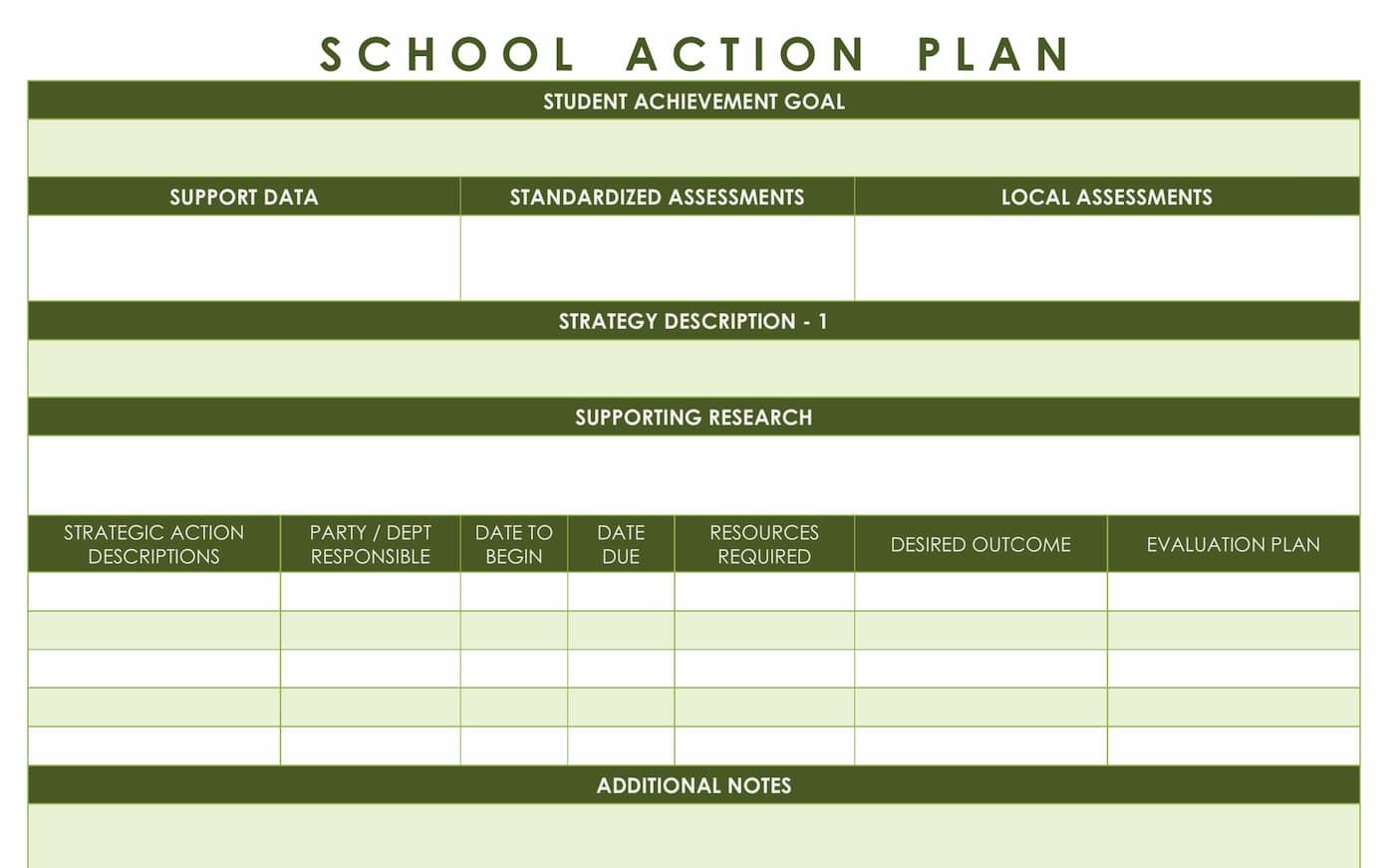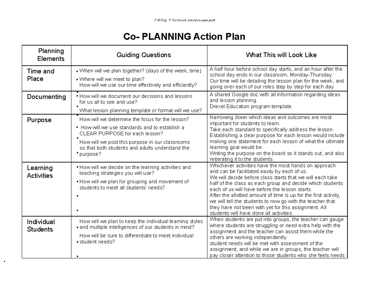 Sample Action Plan Template for Teachers