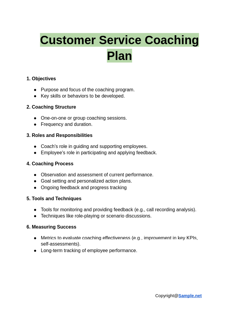 Sample Customer Service Plan Template