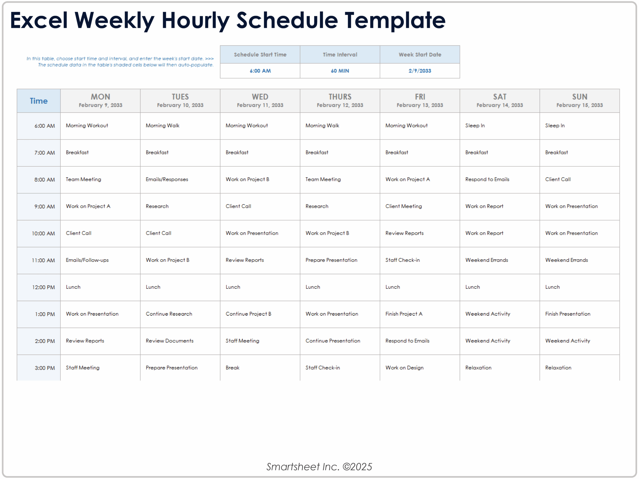 Schedule Spreadsheet Template