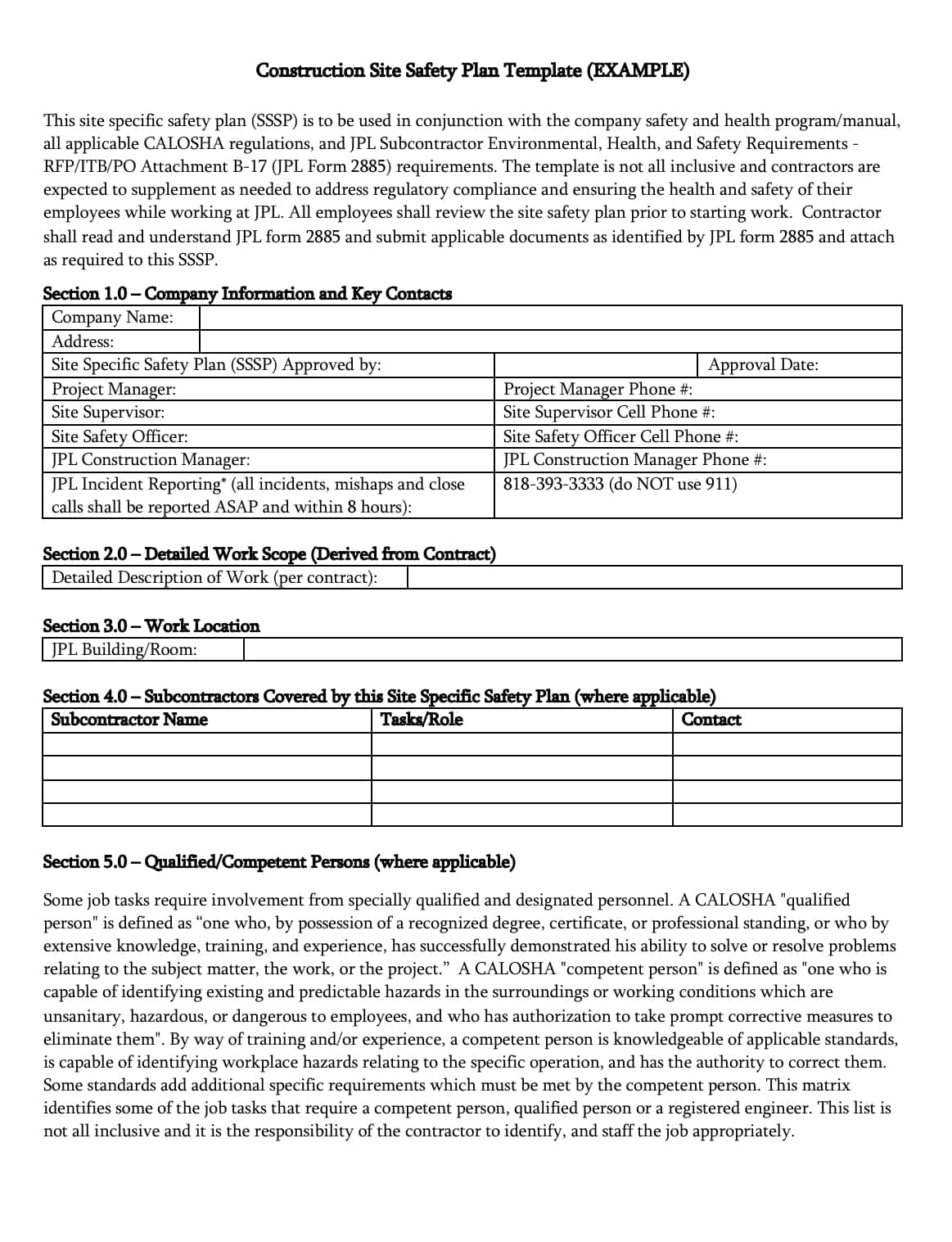 One of the main benefits of using a site specific safety plan template is that it helps ensure all necessary information is included in the plan. This can help prevent oversights and ensure that all potential hazards are addressed. Additionally, templates can save time and resources by providing a framework for the safety plan, rather than starting from scratch.