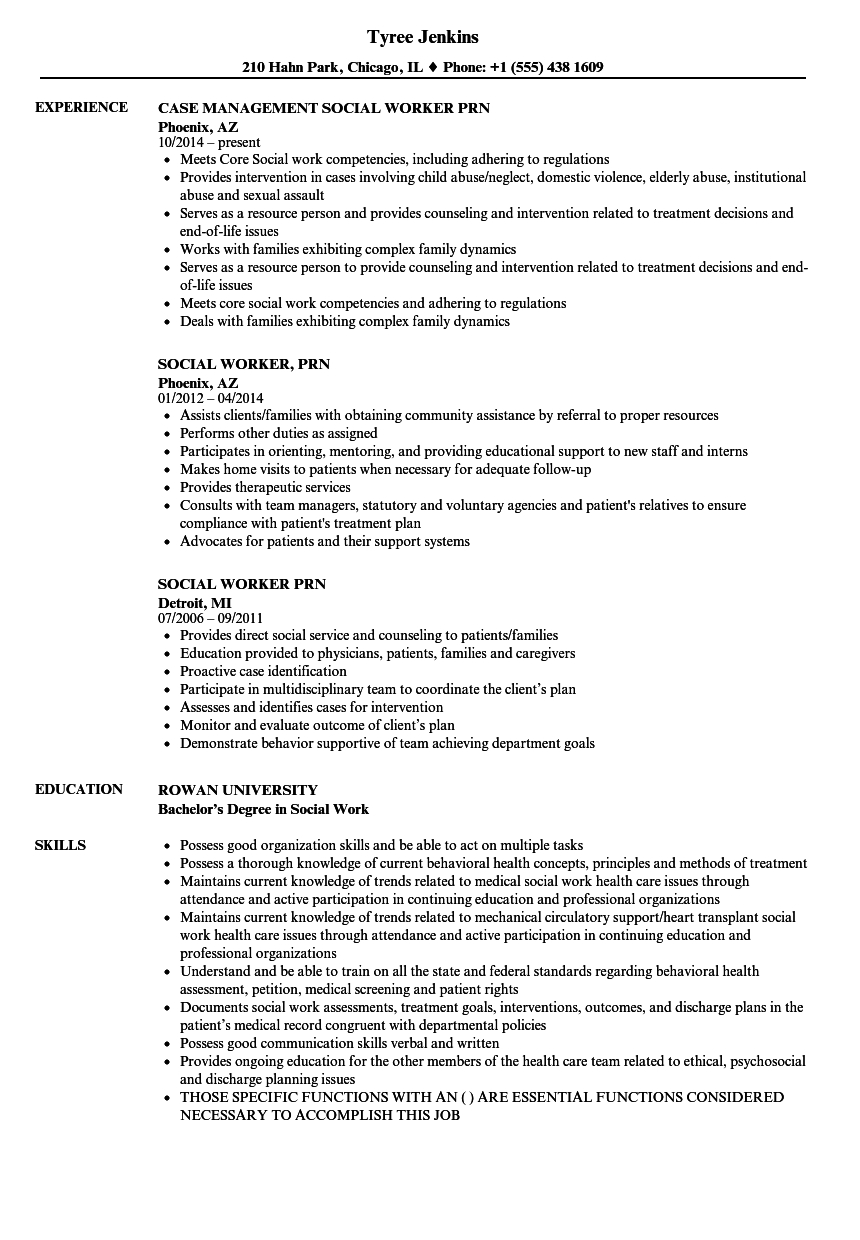 Social Worker PRN Resume Samples Velvet Jobs