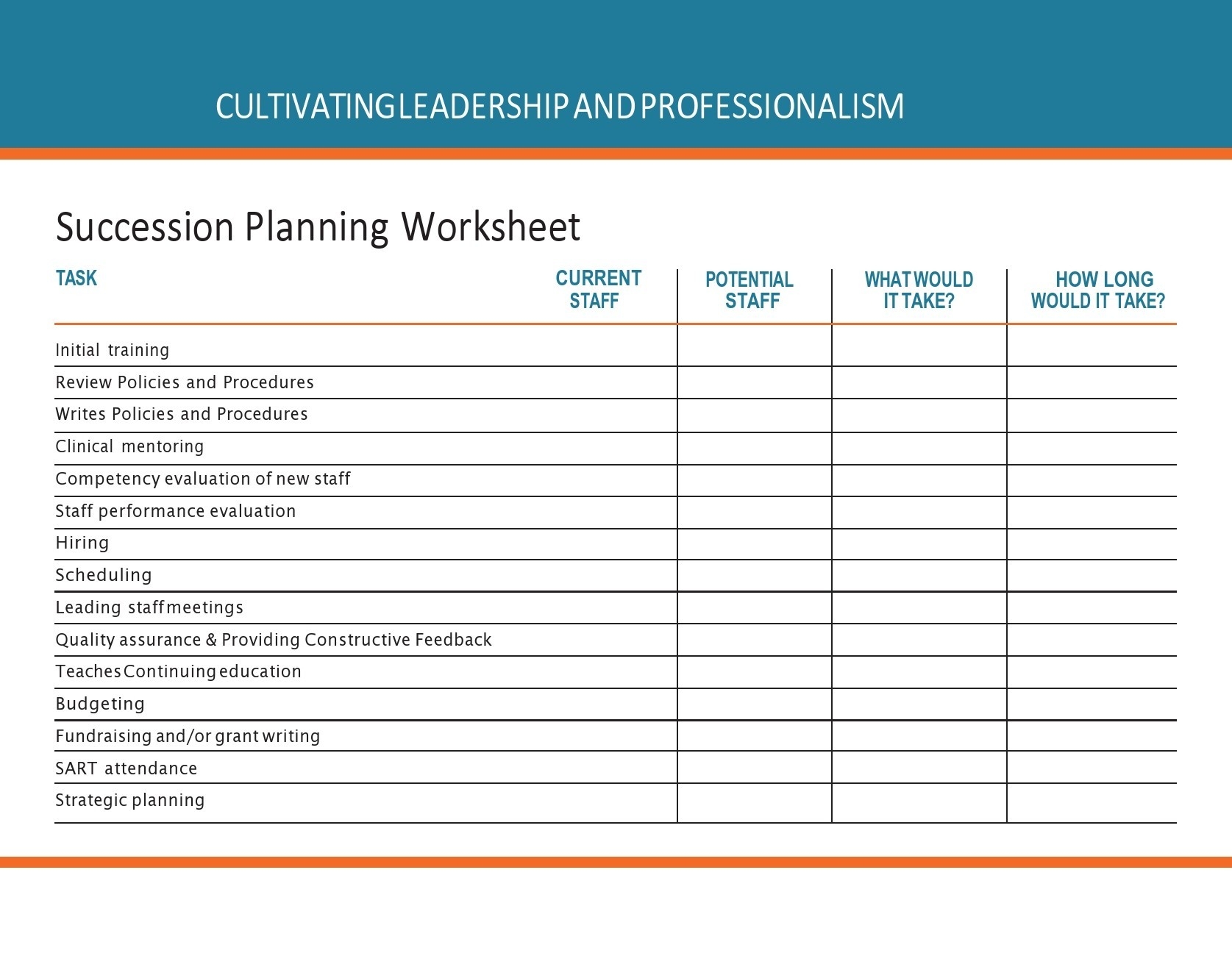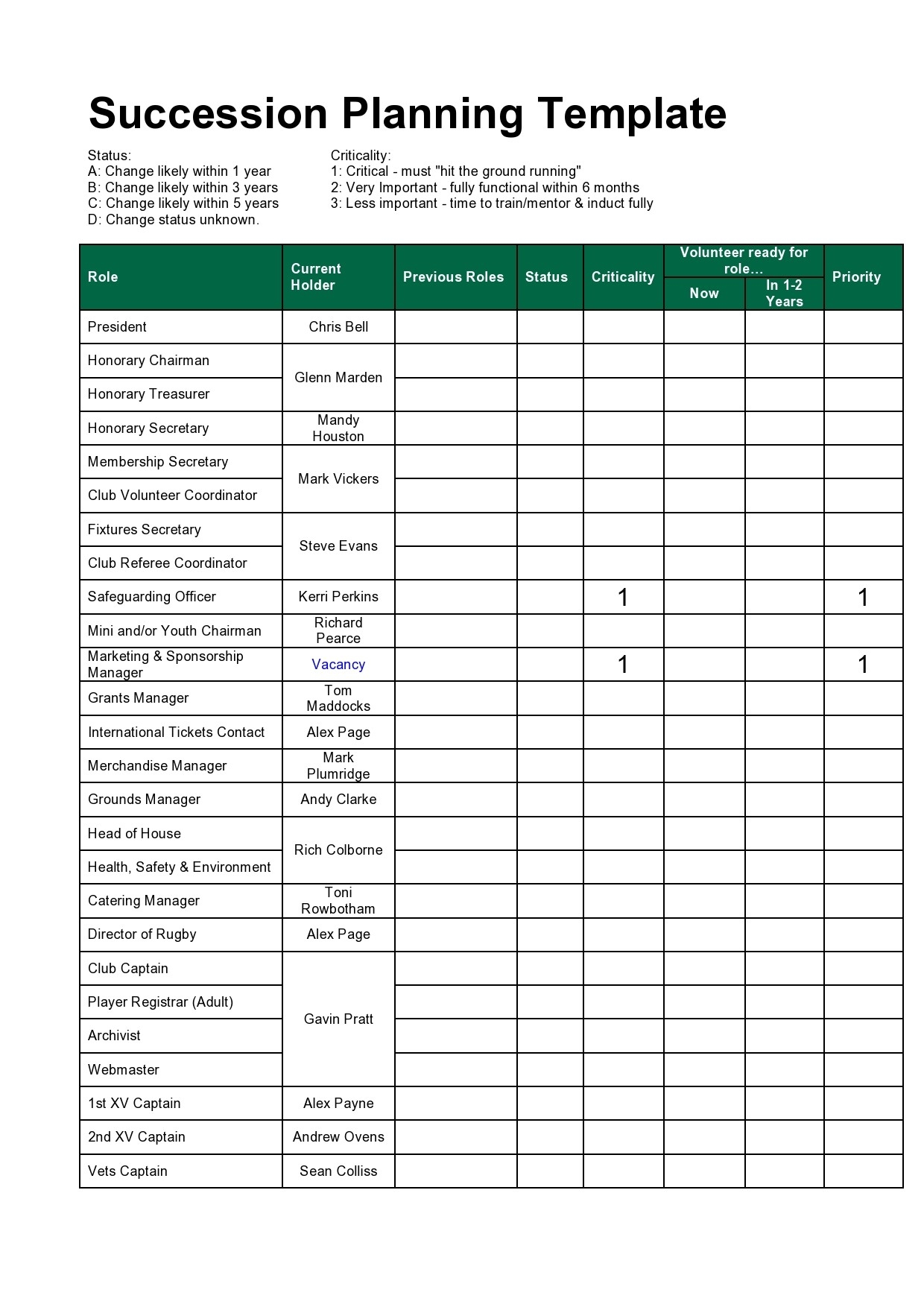 4. Efficiency: By using a template, you can save time and effort in creating a succession plan, as the basic framework is already in place. This allows you to focus on the strategic aspects of succession planning, such as identifying high-potential employees and developing their skills.