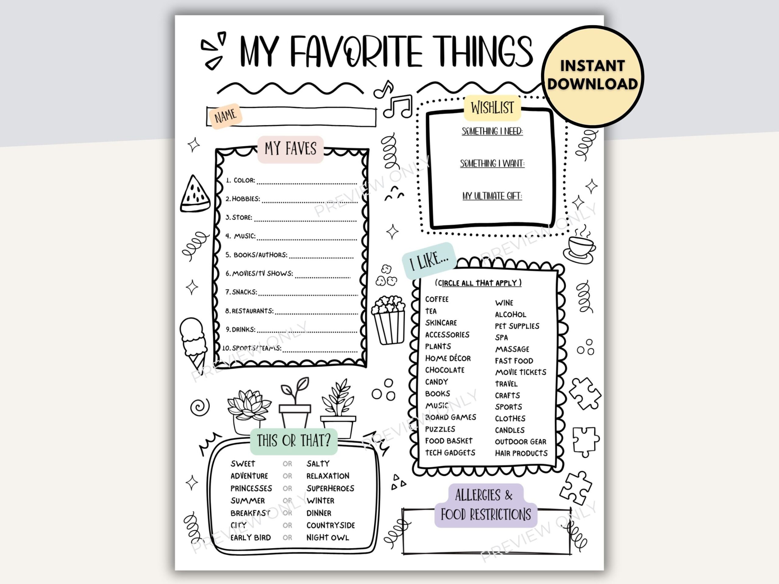 template my favorite things list free printable
