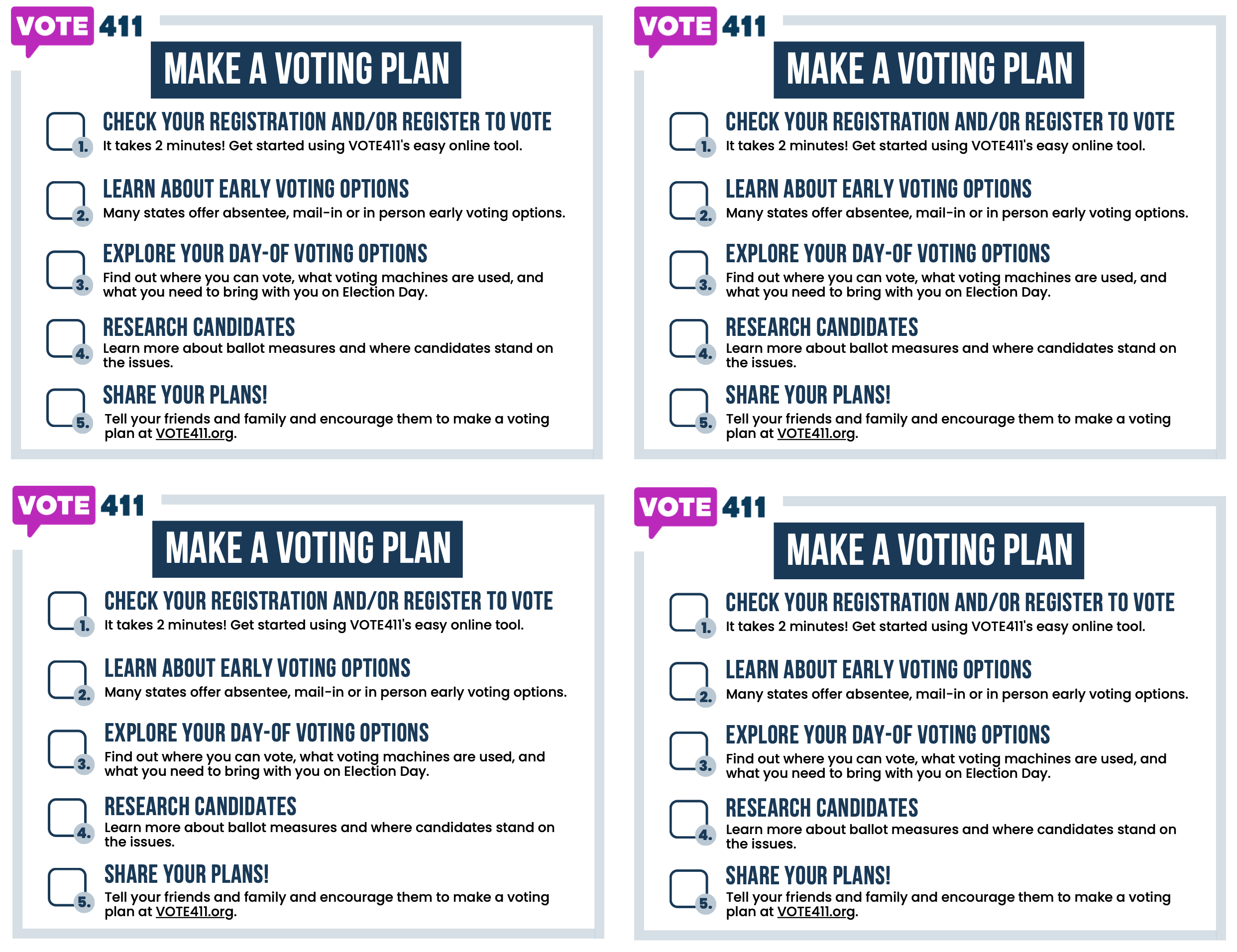 5. Share your plan with others: Let friends, family, or colleagues know about your voting plan and encourage them to create their own. By spreading awareness and information, you can help increase voter turnout and engagement in your community.
